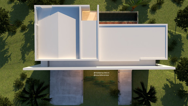 Com os quartos situados na parte inferior da casa, se tomarmos o nível da rua como referência, os moradores desfrutam de uma zona de repouso tranquila e reservada. Esta disposição também facilita a criação de uma área íntima para a piscina, permitindo momentos de lazer e relaxamento com total privacidade.
